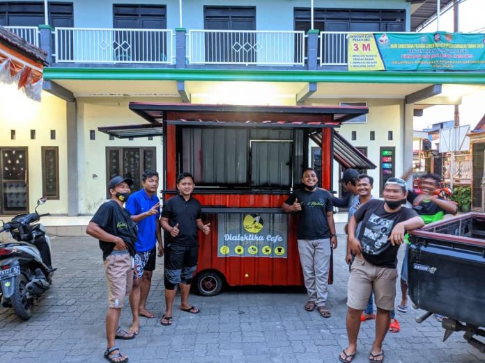 SIDOARJO, JAGAINDONESIA.COM –  Komunitas Kabut Malam menerima hibah Booth Cointainer (Gerobak Lipat yang biasa digunakan untuk berjualan) dari teknik industri UNIPA (Universitas PGRI Adi Buana) Surabaya pada Selasa, 30 Maret 2021.