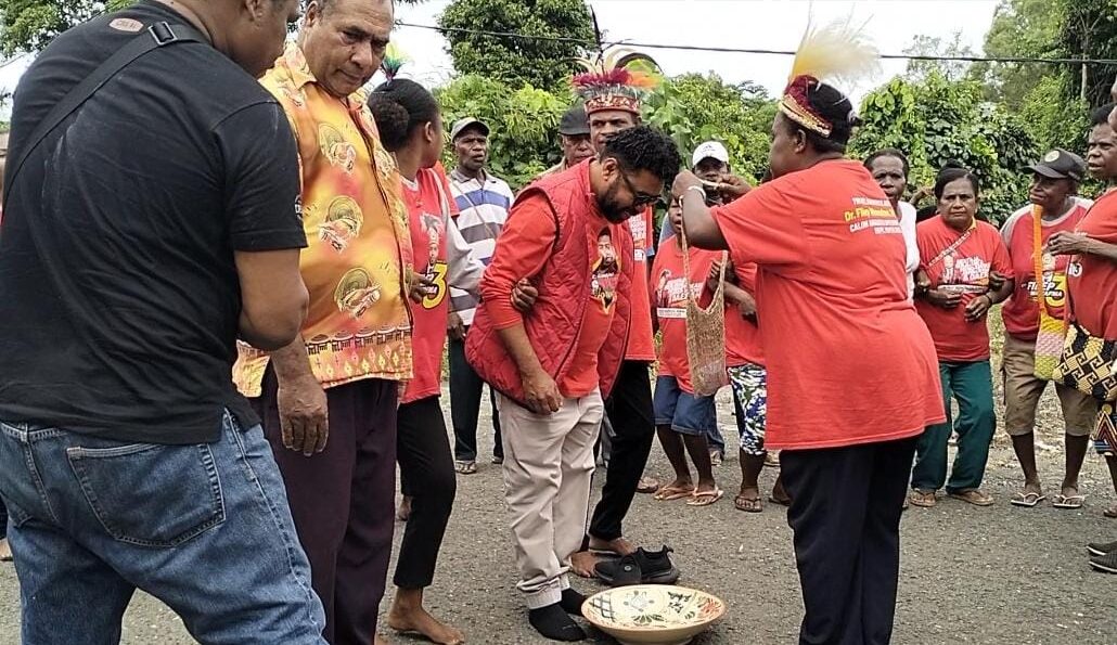 Kedatangan Filep Wamafma sudah dinantikan oleh masyarakat dan disambut dengan dua tarian adat sekaligus yakni adat Byak menginjak piring dan tarian suku Arfak sebagai bentuk penghargaan dan penghormatan kepada caleg DPD RI, Dr. Filep Wamafma.