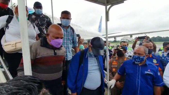 Kedatangan Gubernur Enembe didampingi oleh juru bicaranya, Rifai Darus tidak melakukan jabat tangan dan tetap mematuhi protokol kesehatan Covid-19 sesuai dengan ketentuan pemerintah. Pasca kedatangan di Bandara Sentani, Gubernur Enembe segera melanjutkan perjalanan menggunakan mobil.