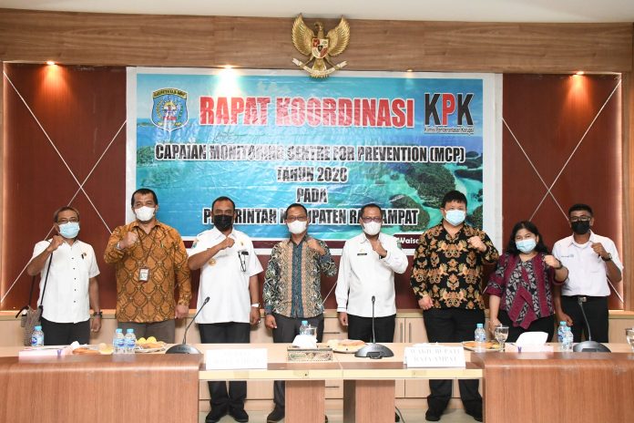 RAJA AMPAT, JAGAINDONESIA.COM – Rabu 3/3/21, KPK Bersama Pemda Raja Ampat menggelar rapat koordinasi capaian MCP (Monitoring Centre For Prevention) pencegahan korupsi.