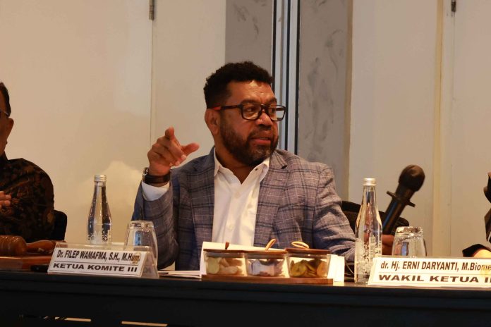 PAPUA BARAT, JAGAINDONESIA.COM – Ketua Komite III DPD RI, Dr. Filep Wamafma menanggapi keluhan masyarakat terkait dugaan praktik pemindahan ASN keluar Papua secara non-prosedural. Filep menekankan pentingnya Kementerian Pendayagunaan Aparatur Negara dan Reformasi Birokrasi (KemenPAN-RB) memperhatikan masalah klasik di tanah Papua ini dan segera mengambil kebijakan tegas, misalnya dengan membentuk Satgas Khusus.