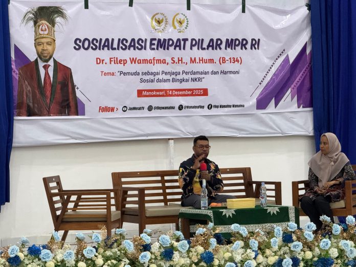 Manokwari — Anggota Dewan Perwakilan Daerah (DPD) RI asal Papua Barat, Dr. Filep Wamafma, menggelar kegiatan Sosialisasi Empat Pilar MPR RI bersama mahasiswa di Kampus Universitas Muhammadiyah Papua Barat (UMPB), Jalan Trikora Rendani, Kelurahan Anday, Distrik Arfai, Kabupaten Manokwari, Sabtu (14/12/2025).