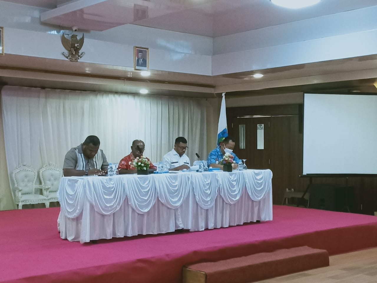 Mengawali pertemuan itu, Ketua delegasi rombongan Komite I DPD RI Filep Wamafma dalam sambutannya menyampaikan permohonan maaf kepada jajaran pemerintah daerah karena pertemuan dilakukan pada hari Minggu (5/6/2022).